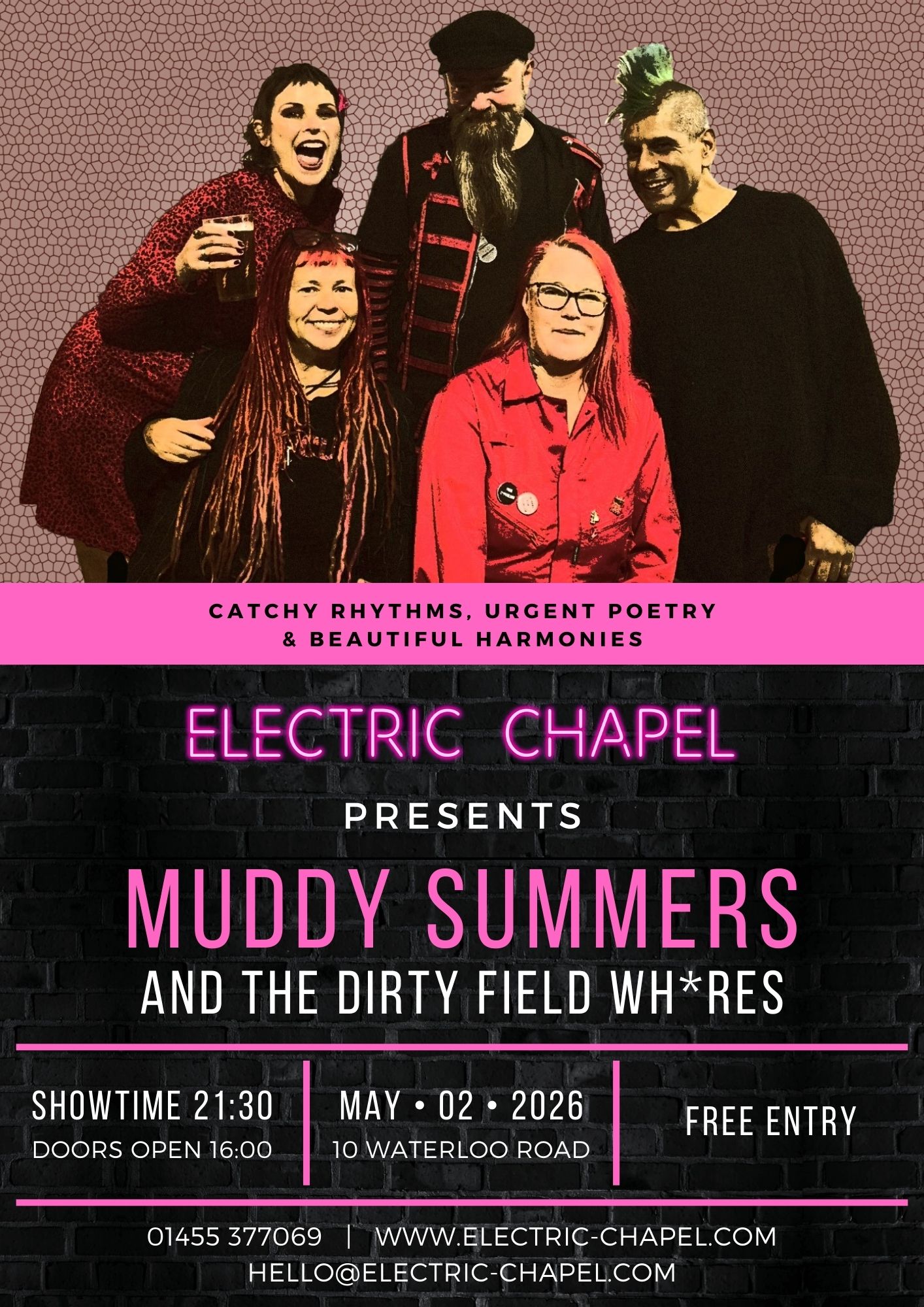 With a fierce mix of folk, punk, protest music and sharp lyrics, Muddy Summers and the Dirty Field Whores bring raw energy and emotion to every track.