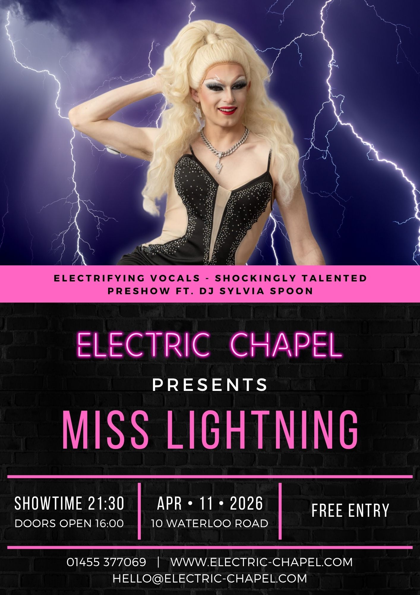 Electric Chapel is buzzing to welcome back the shockingly talented Miss Lightning to our stage!