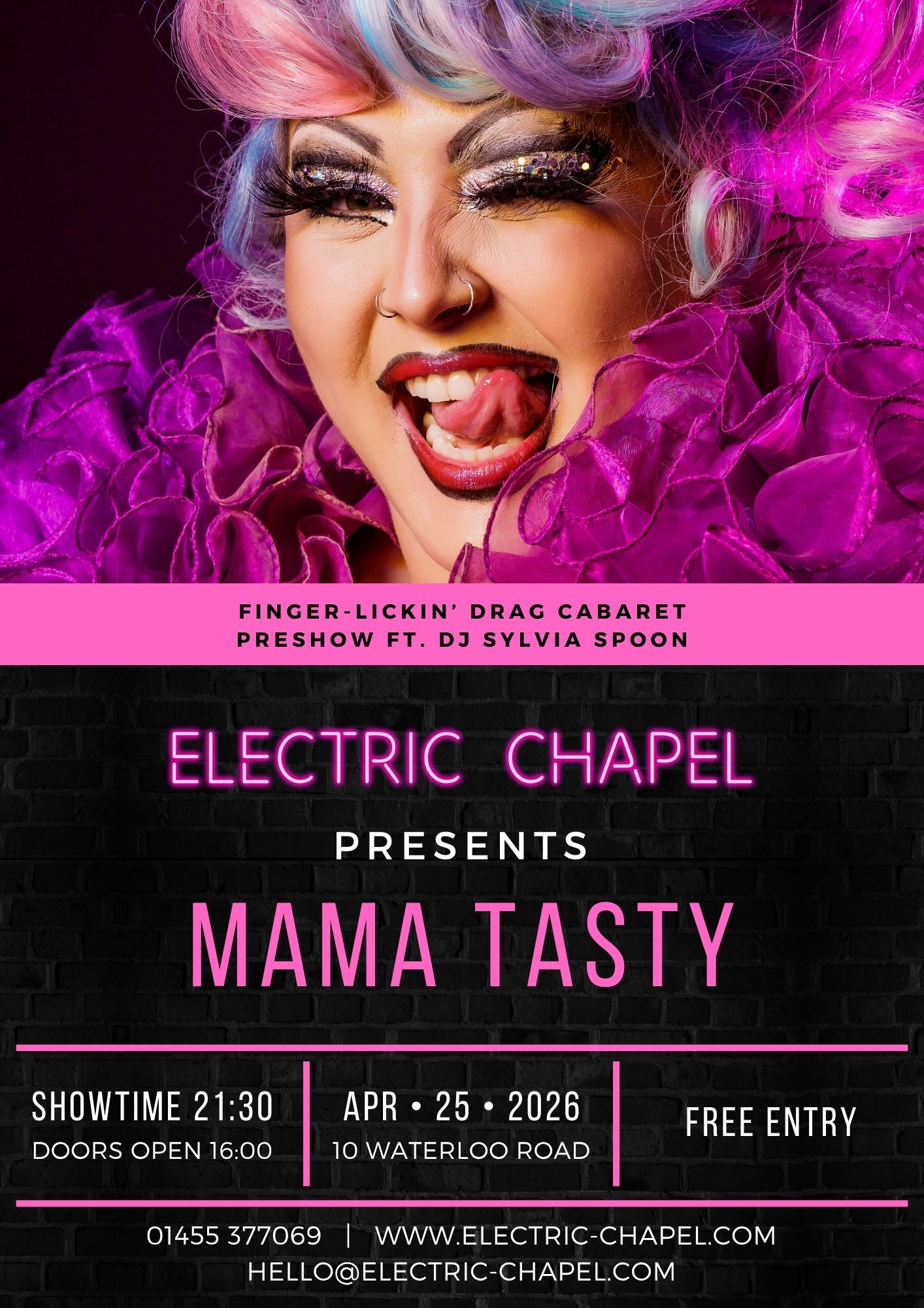 Join us for an evening of mouth-watering drag cabaret from 9:30pm, with preshow music from Sylvia Spoon!